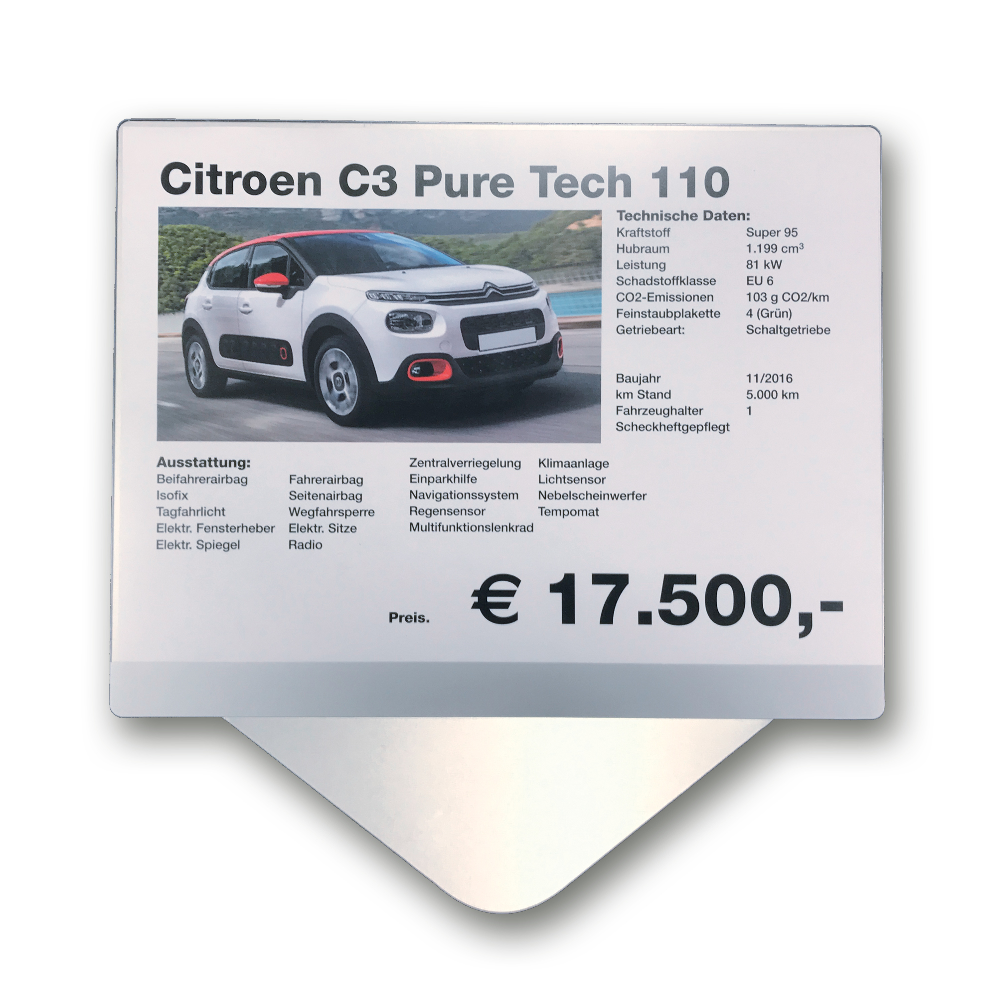 Preisblatthalter Aluminium Windschutzscheibe | DIN A4 Querformat