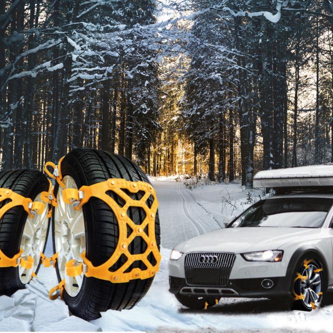 • die Rückseite der Schneekette passt sich bei Reifenbewegungen automatisch and und verhindert somit eine eigenständige Bewegung der Schneekette